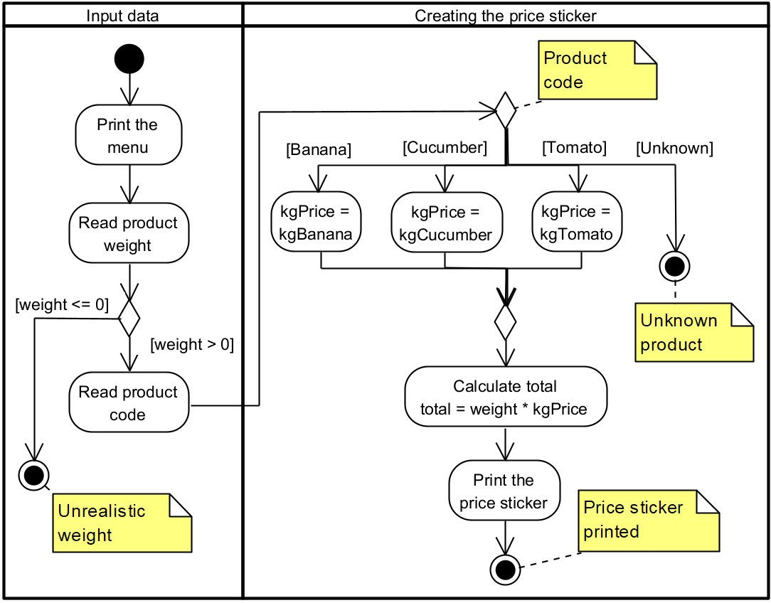 - Be able to model a switch statement in an activity diagram