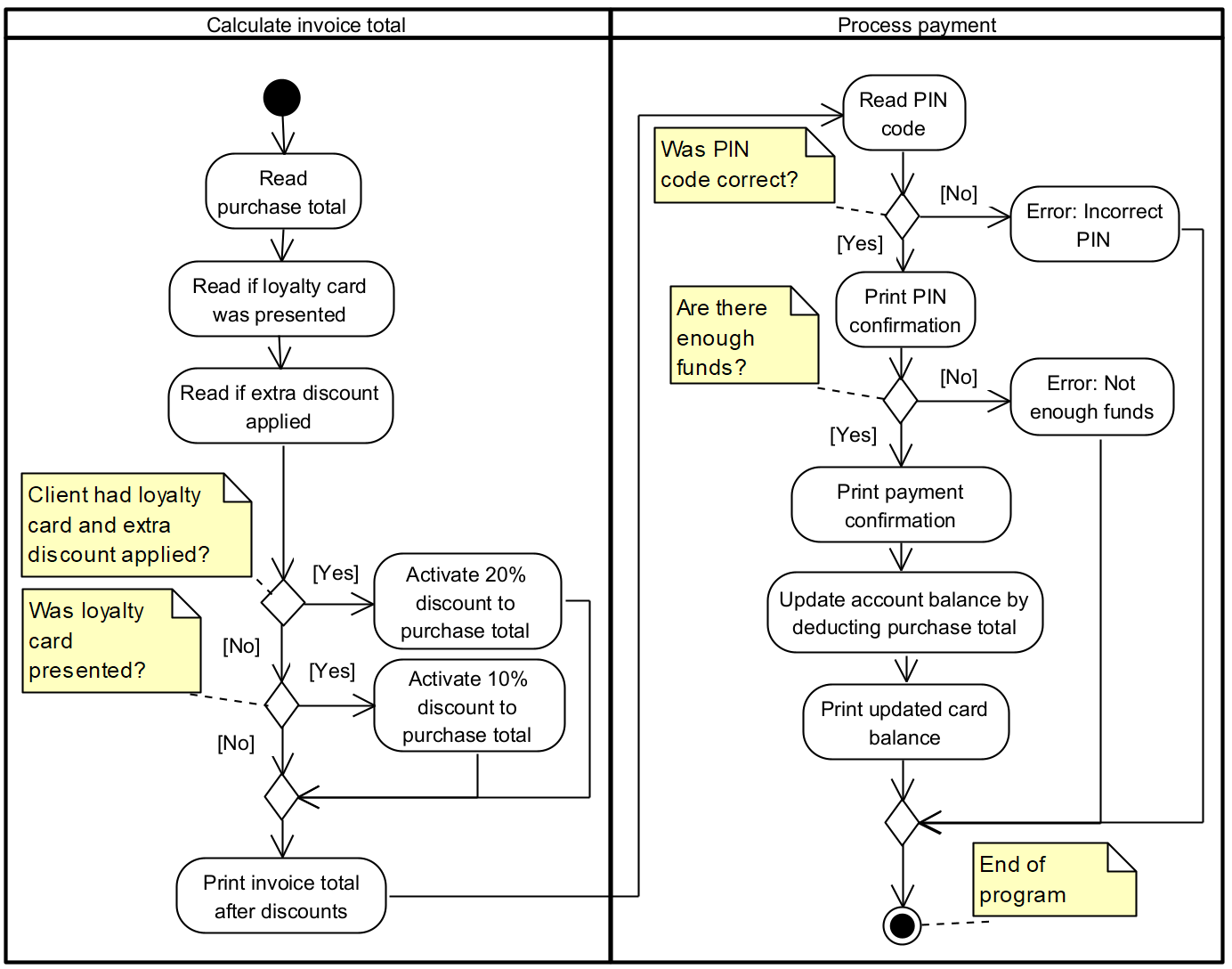 - Know how to have multiple different endings in both programs and in activity diagrams