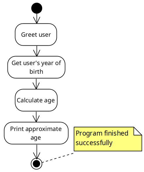 - Tervita kasutajat - Küsi kasutajalt sünniaasta - Arvuta kasutaja võimalik (tõenäoline) vanus - Väljasta vanus |