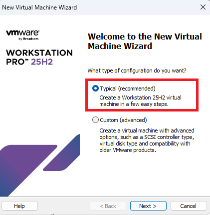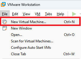 Launch VMWare Workstation. Create a new virtual machine.