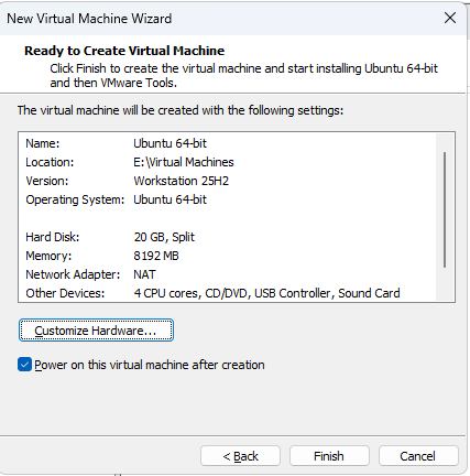 Installing Ubuntu in a VMWare Workstation Pro